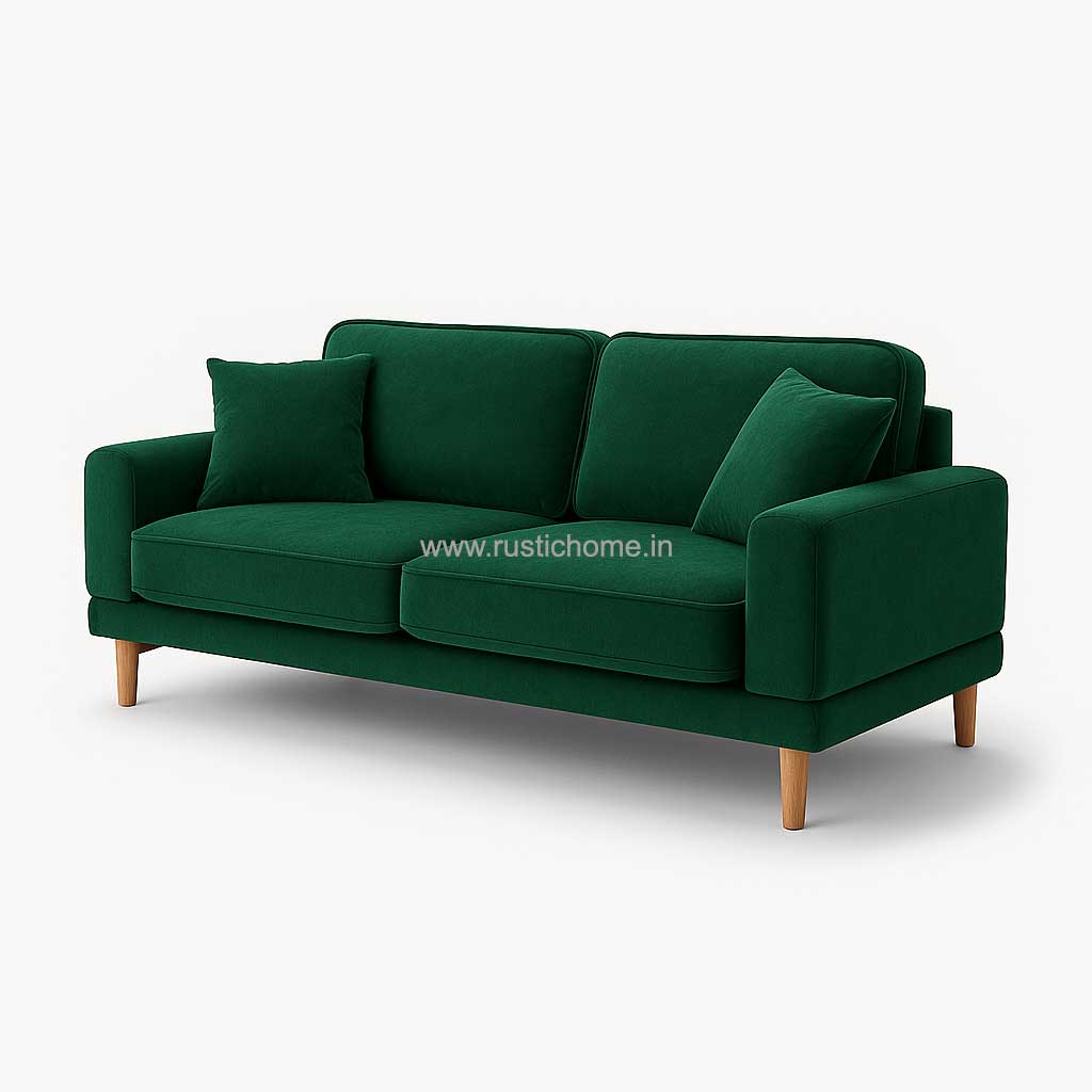 Turner Velvet Green Fabric  Three Seater sofa   combines contemporary design with practical comfort for modern living spaces. Upholstered in durable fabric, this three-seater offers generous seating for families and guests alike. Its clean lines and neutral aesthetic complement various interior styles, from minimalist to eclectic décor. The sturdy frame ensures long-lasting support, while the cushioned seating provides a welcoming retreat for relaxation. Ideal for living rooms, lounges, or spacious bedrooms, the Dixie brings both functionality and understated elegance to your home.