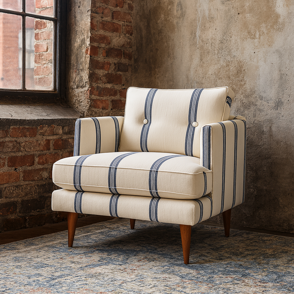 Solna Blue Stripe Printed Accent Chair